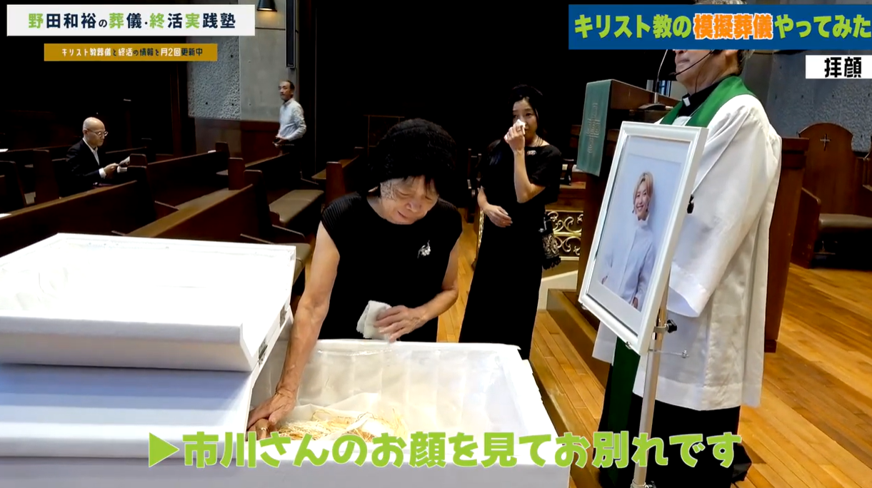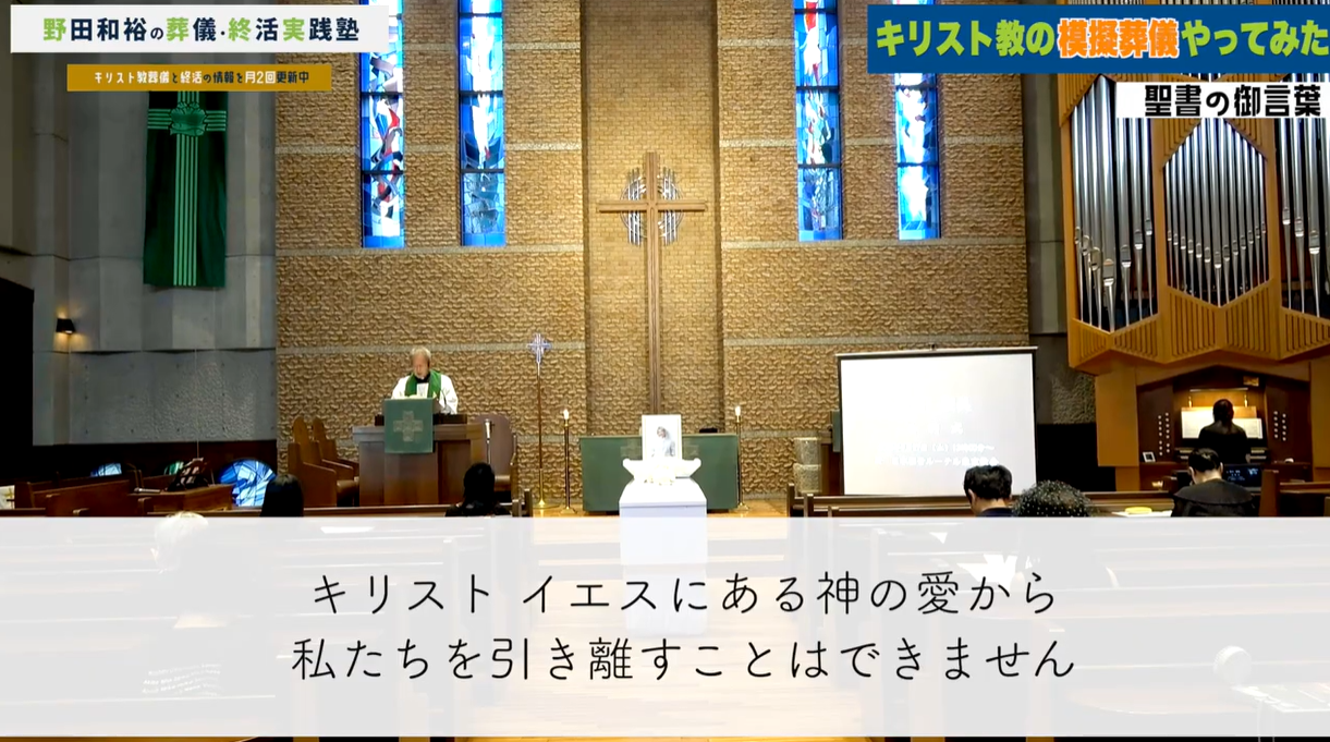 日本福音ルーテル東京教会を舞台に、納棺・告別式・賛美・出棺・祈りなど、実際の葬儀を本格再現!