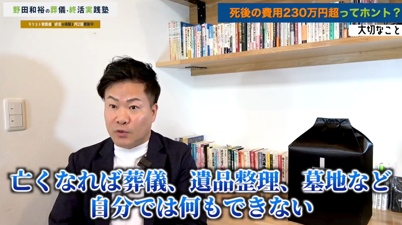 今回の動画では、日本経済新聞の記事『死後の費用、目安を知る 葬儀・墓・遺品整理で230万円超』をもとに、その実態を解説します。
